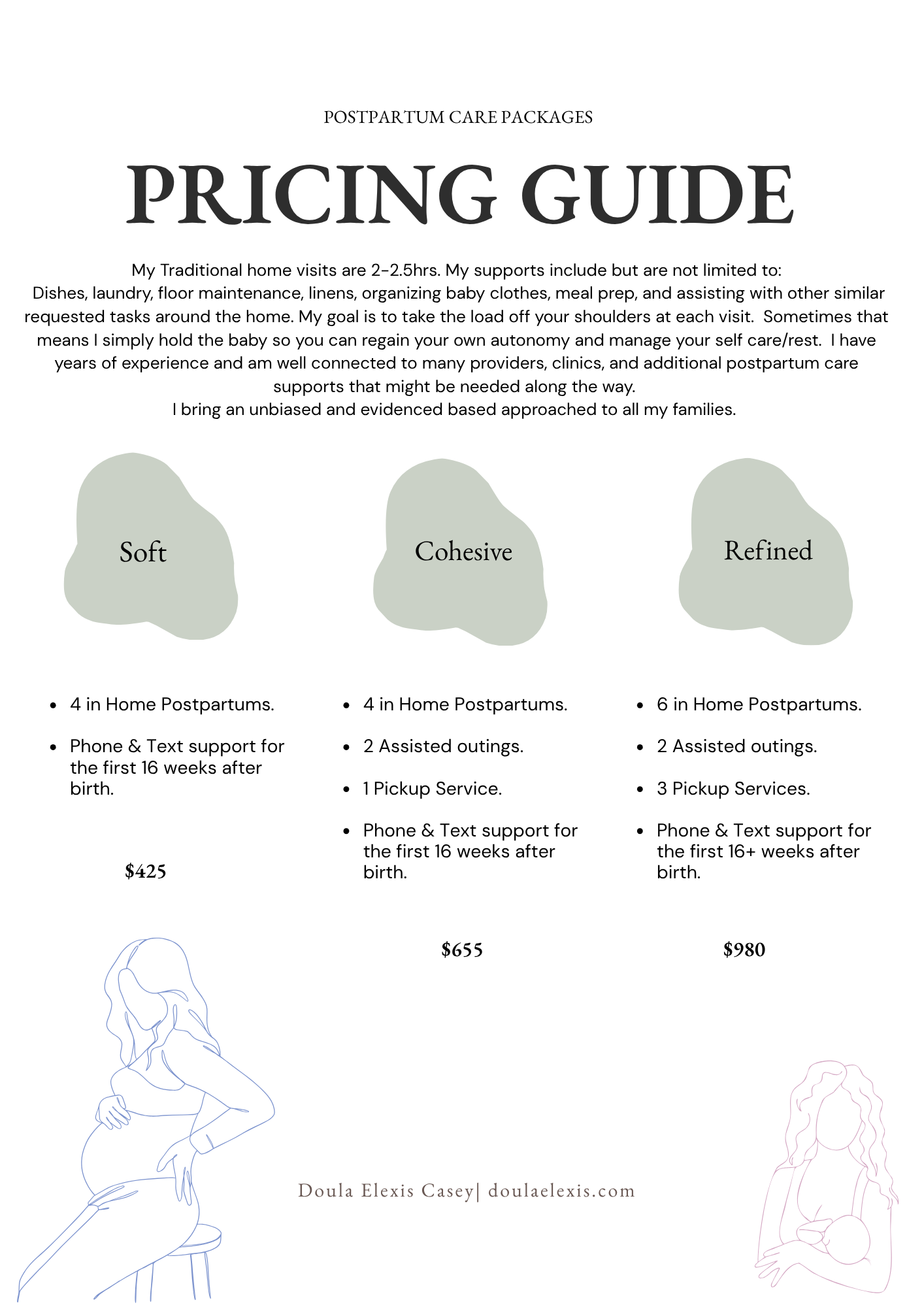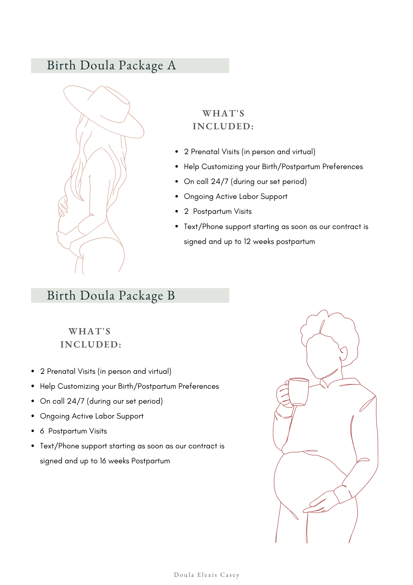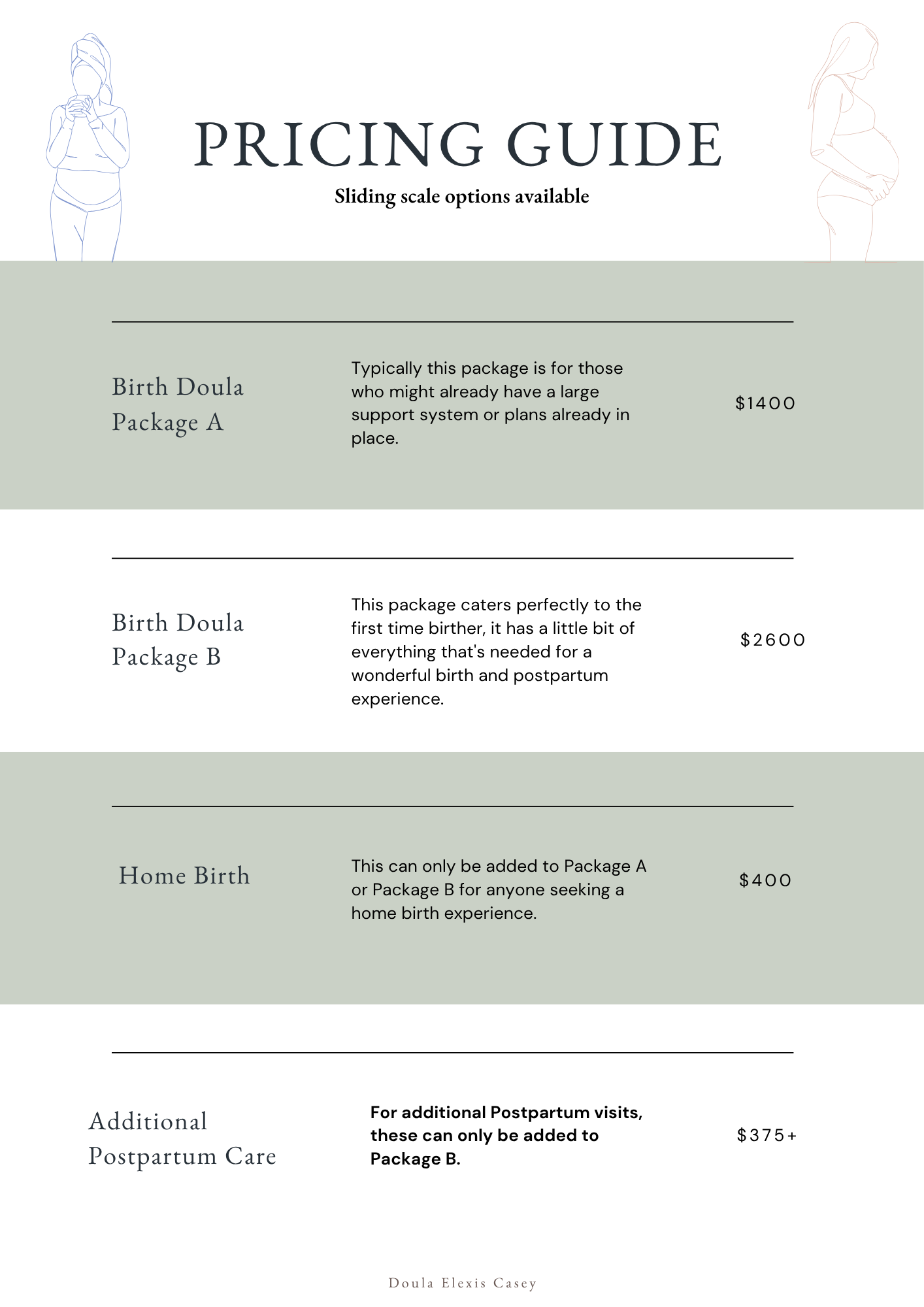 Health, support, and finances are all changing variables. I do offer sliding scale packages for when life happens. Contact me below to see what is available around your estimated due date.